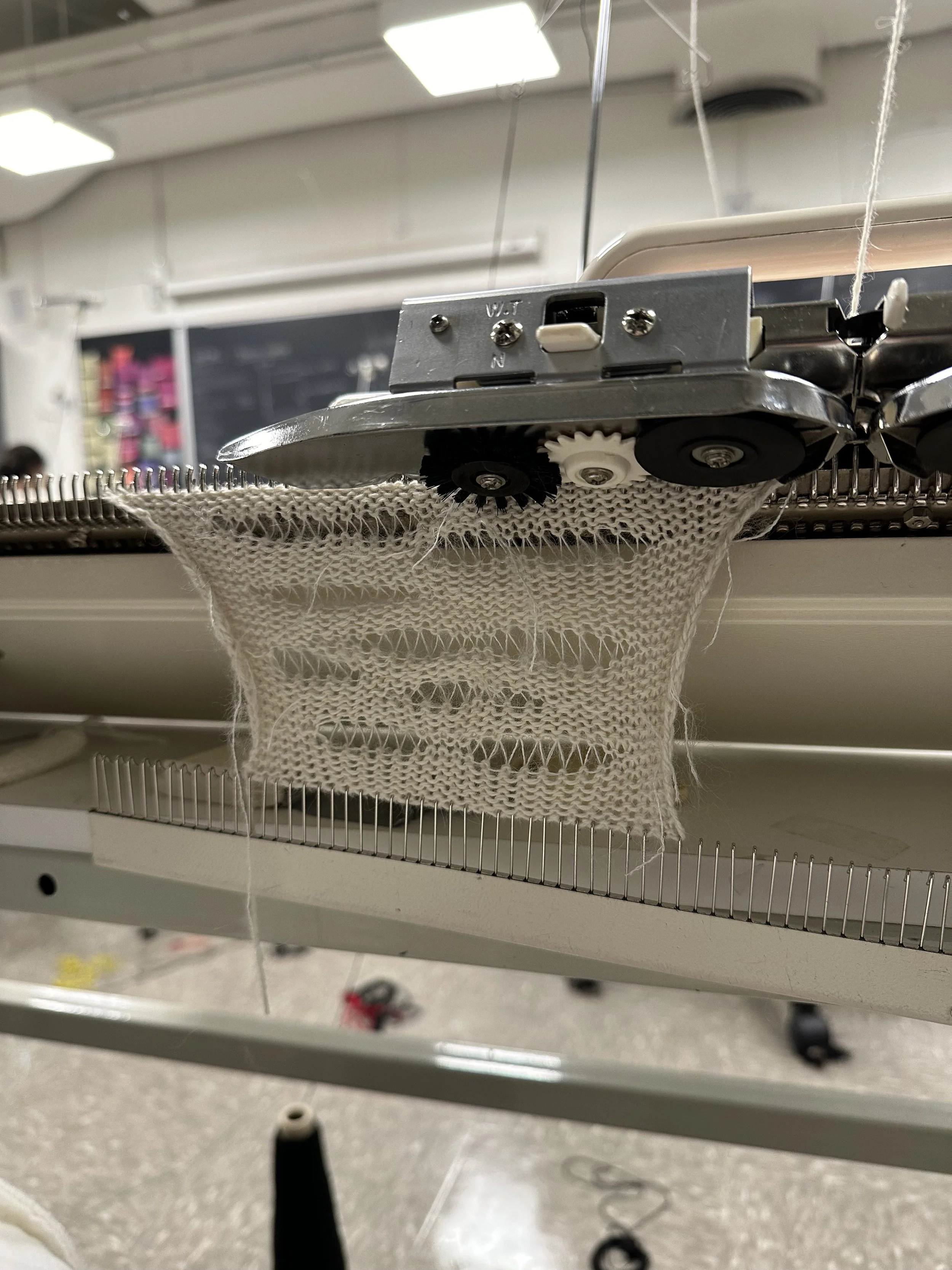 Introduction to Full-Fashion Knits final: I created a bunny ear beanie scarf, heavily inspired by Charles Jeffrey Loverboy. Made from all secondhand/consigned yarn sourced from the Bay Area, California.