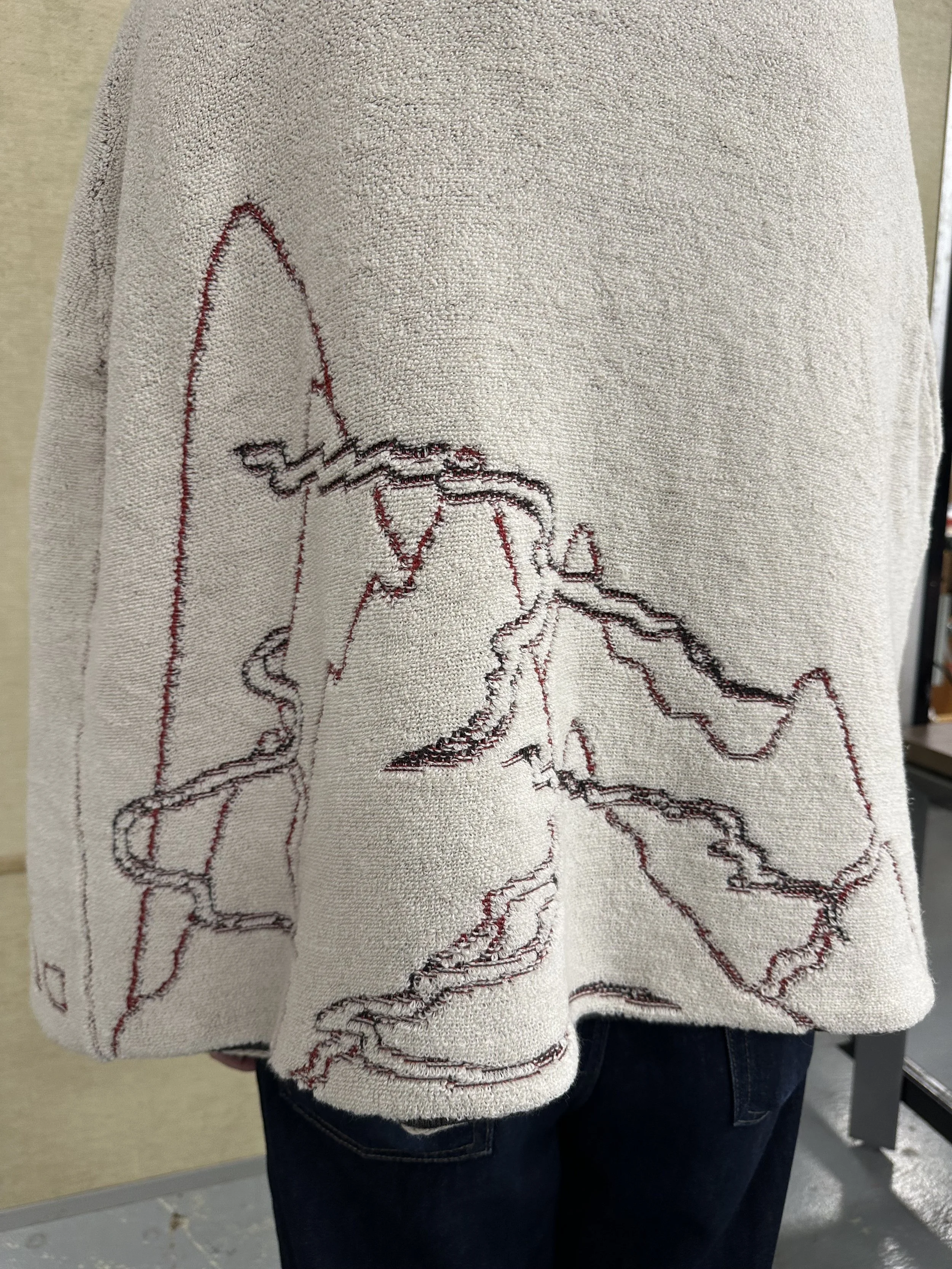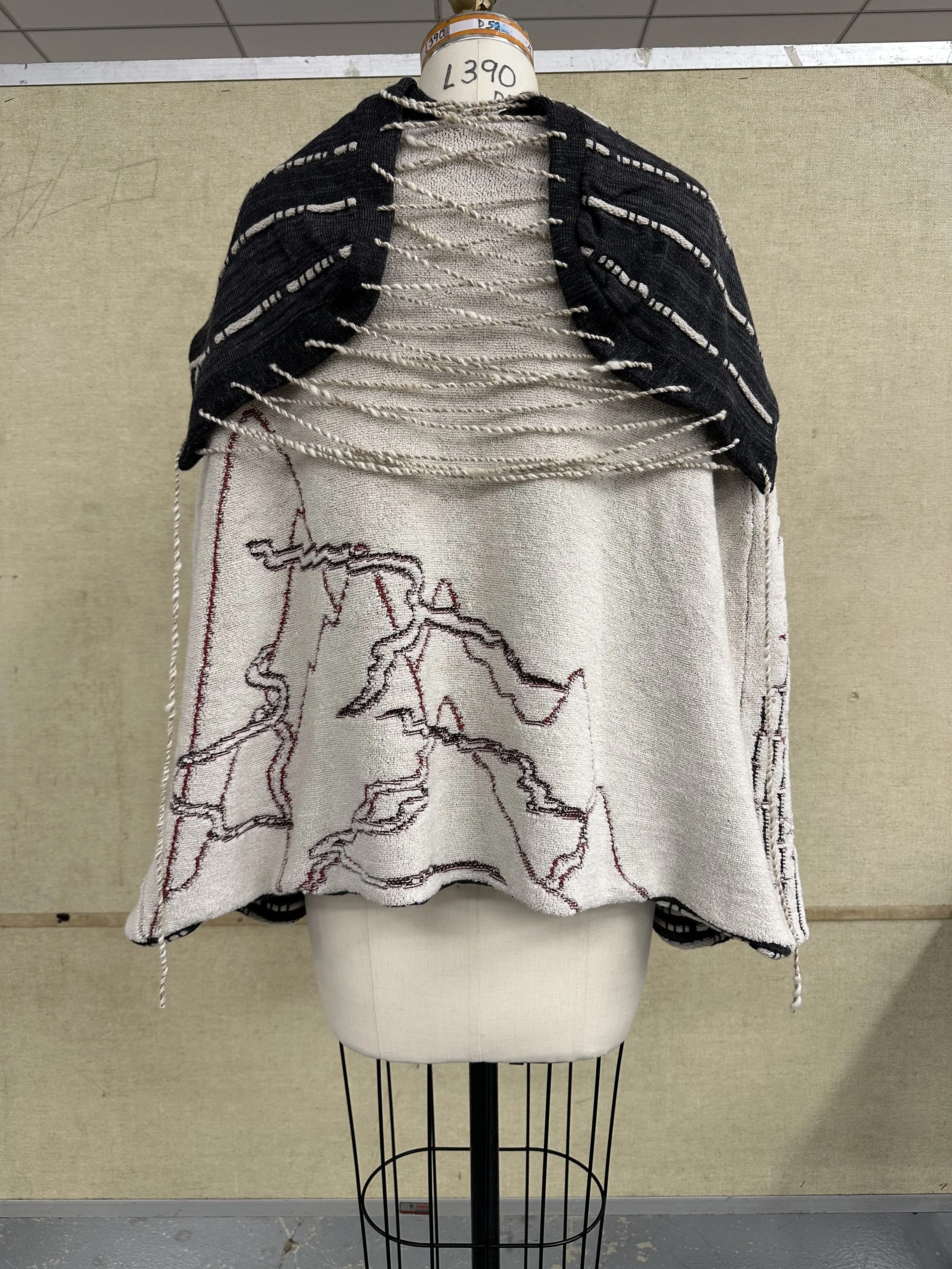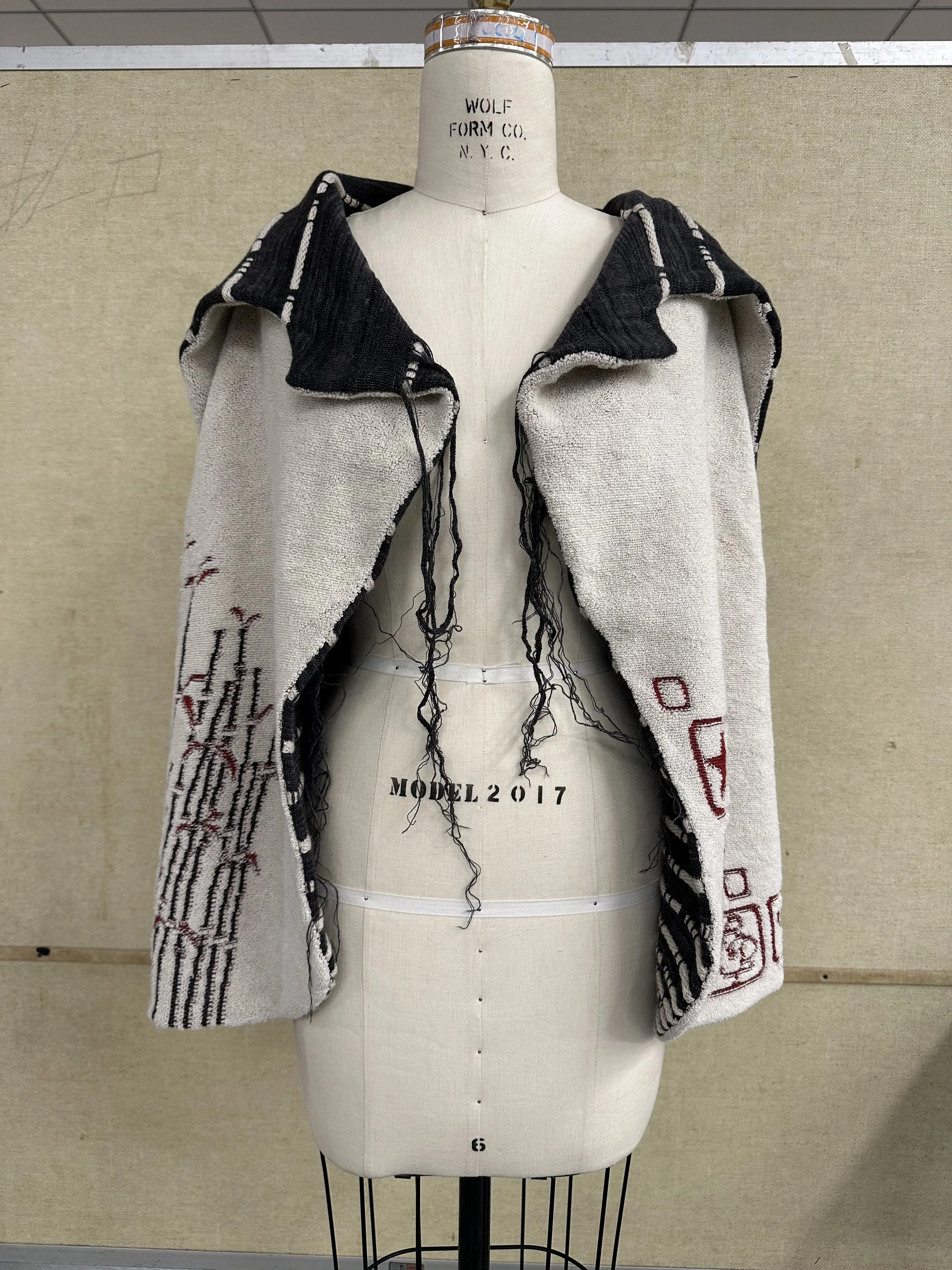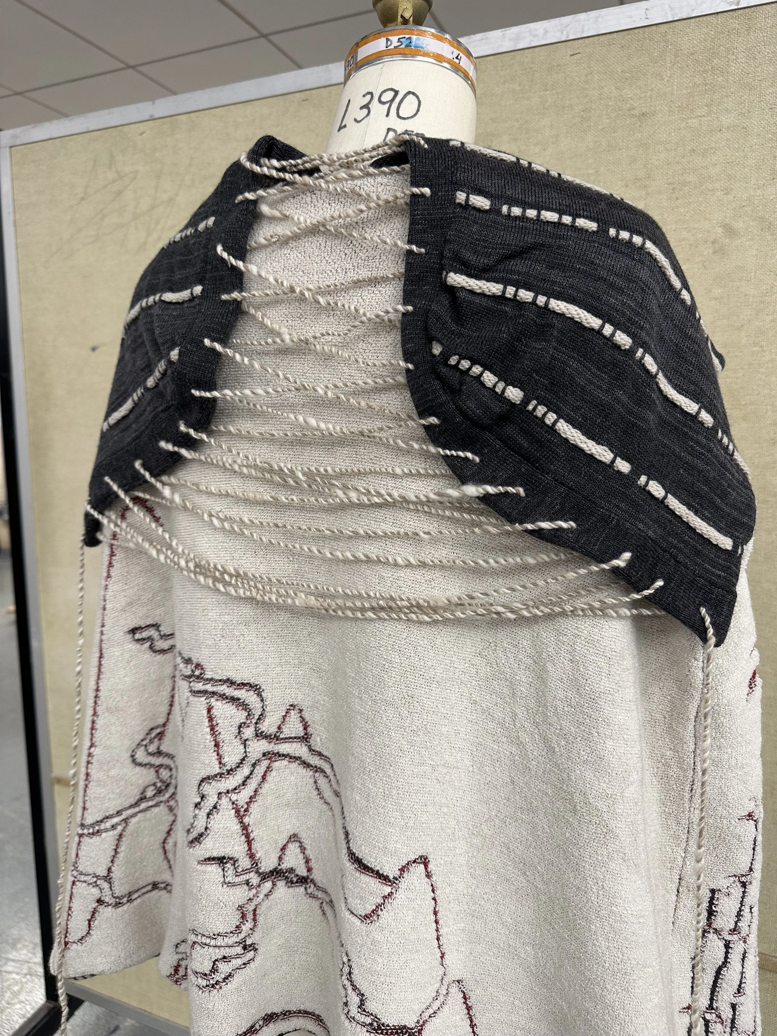 Interwoven Resonance is a project that reflects both my partner's and my cultures of Chinese-American and Colombian-American. The journey of immigrants to the US has profoundly shaped the identities of individuals from diverse backgrounds, fostering a duality that reflects both cultures. We wanted to create a garment that was reflective of us both with the use of Loro Piana’s yarns, while also creating a winter legacy.