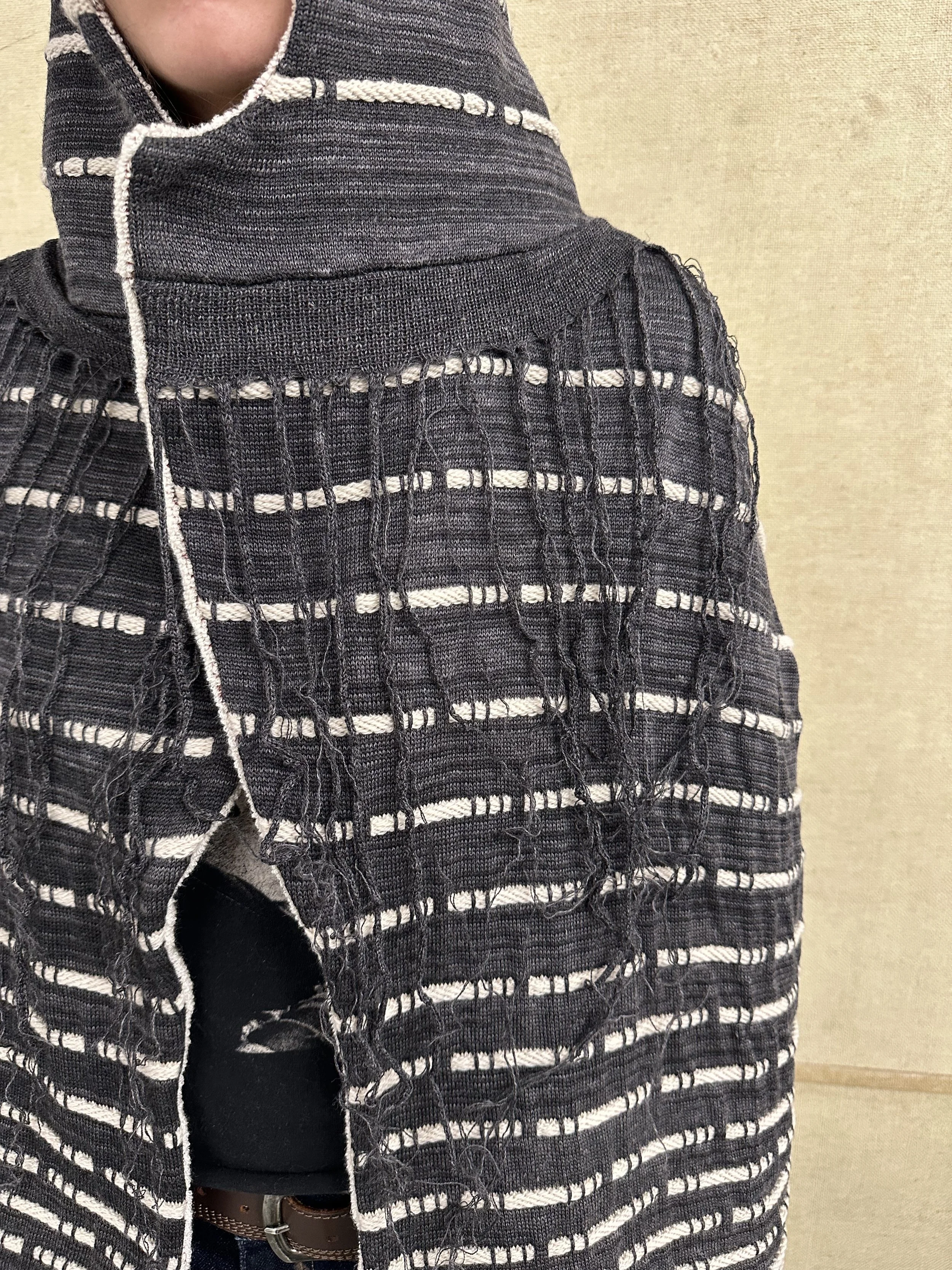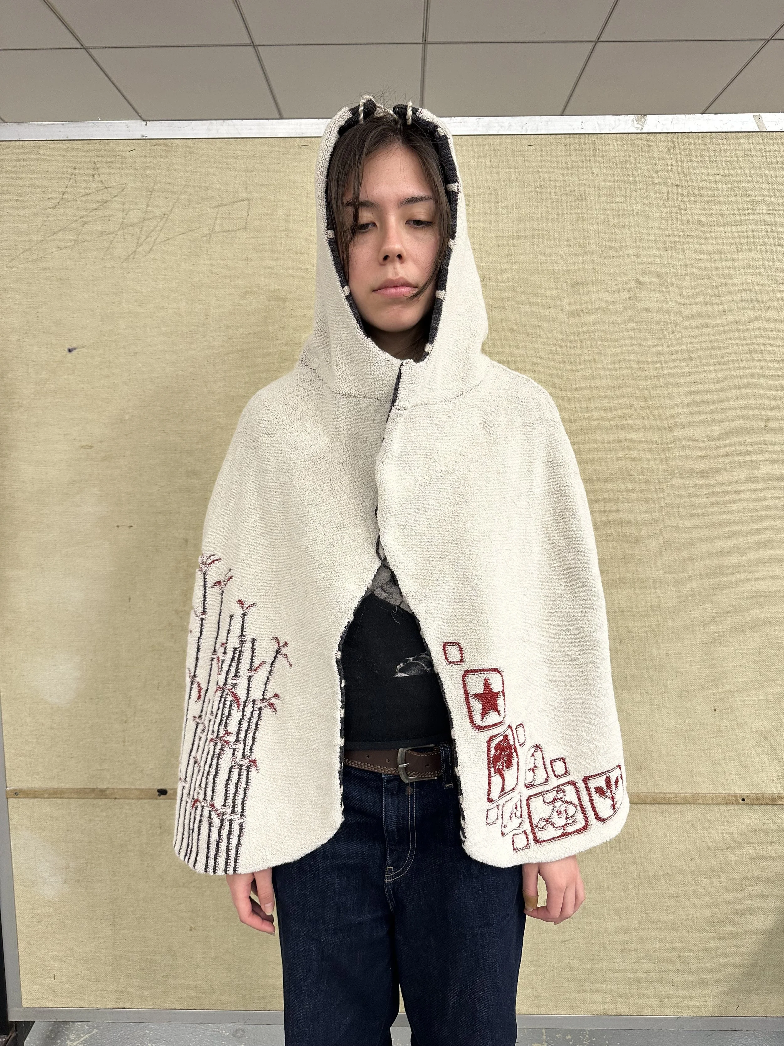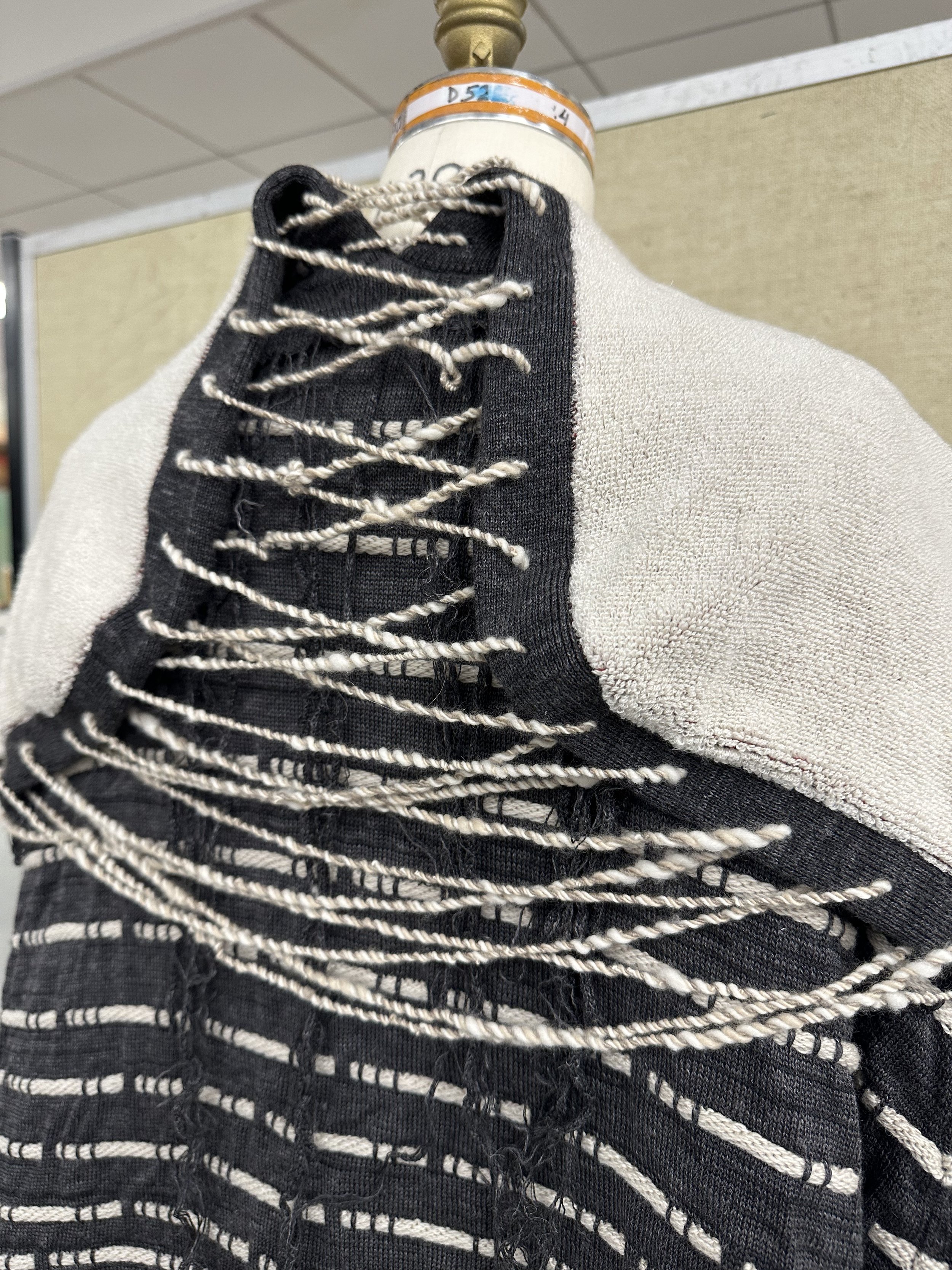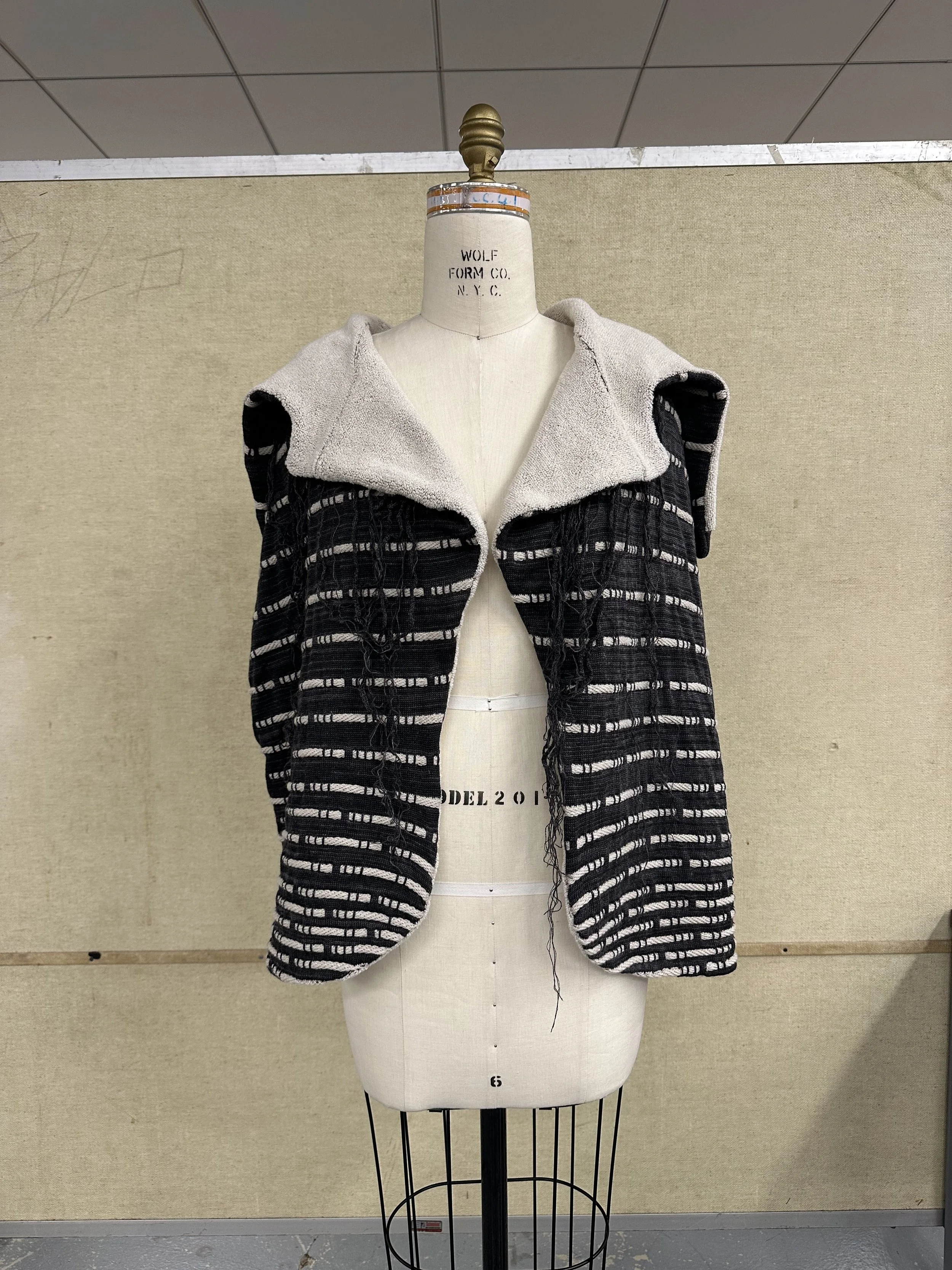 Interwoven Resonance is a project that reflects both my partner's and my cultures of Chinese-American and Colombian-American. The journey of immigrants to the US has profoundly shaped the identities of individuals from diverse backgrounds, fostering a duality that reflects both cultures. We wanted to create a garment that was reflective of us both with the use of Loro Piana’s yarns, while also creating a winter legacy.